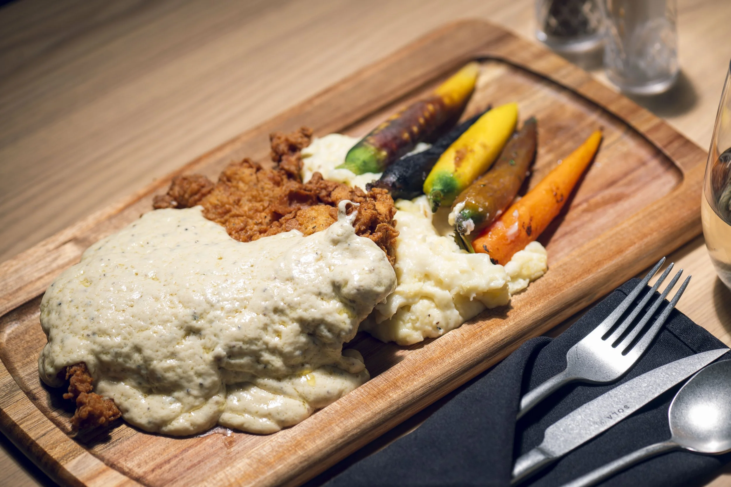 River traditions meet foundry-fire flavor. Expect signature fried chicken, Gulf shrimp over creamy grits, pan-seared catfish, and ribeyes that don't need introduction. We're talking smoked wings, riverboat Cajun penne, collard greens, and fried okra that tastes like home. And our cocktail menu? Just as thoughtfully crafted as everything that comes out of our kitchen.